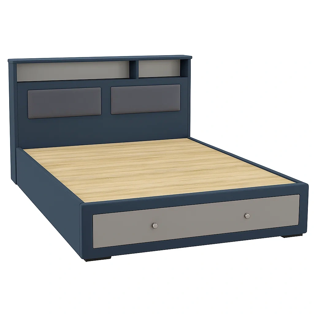 Lit simple en bois mdf avec tête de lit rembourrée et tiroirs gris