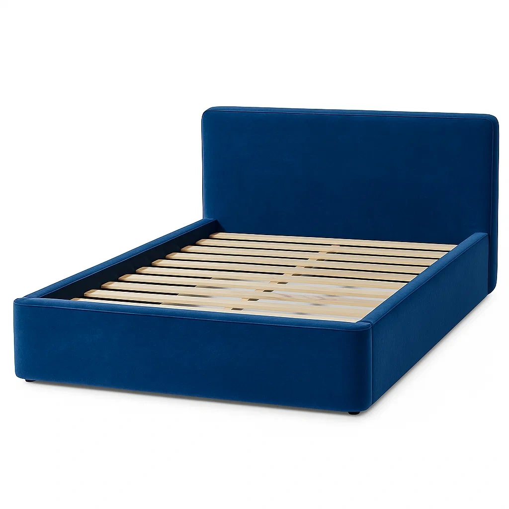 Lit double en velours bleu avec structure en bois 140x200 cm