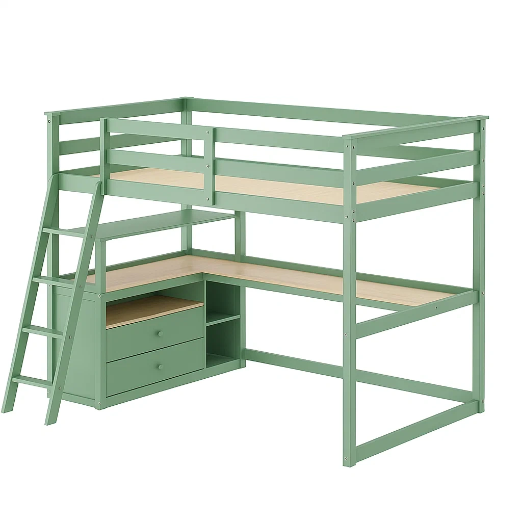 Lit mezzanine en métal et bois mdf avec bureau intégré vert 197cm
