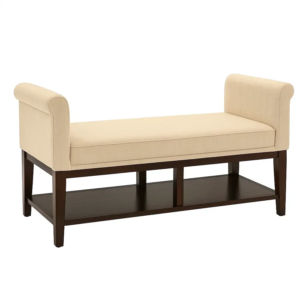 Cette banquette comprend une étagère inférieure pour un rangement supplémentaire.