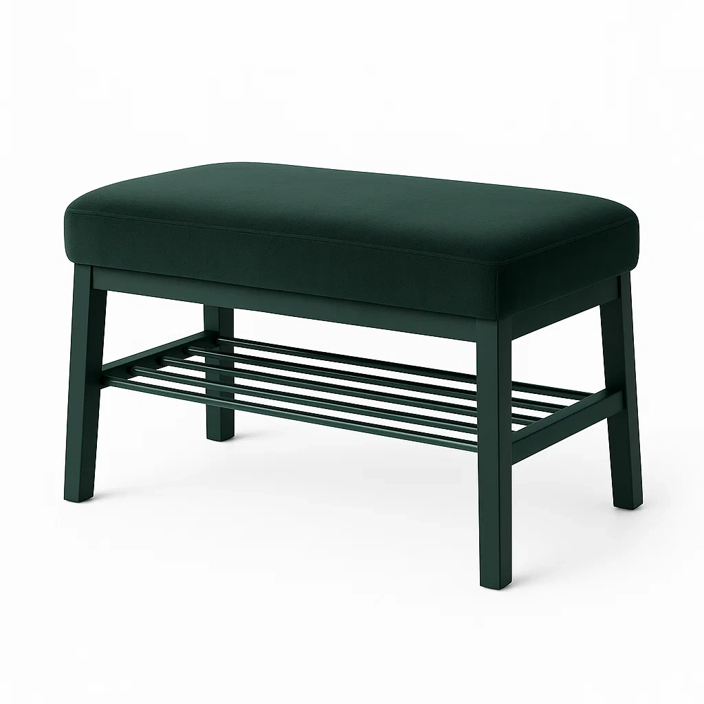 Banc à chaussures en bois et tissu avec étagère de rangement vert 80x40x45cm