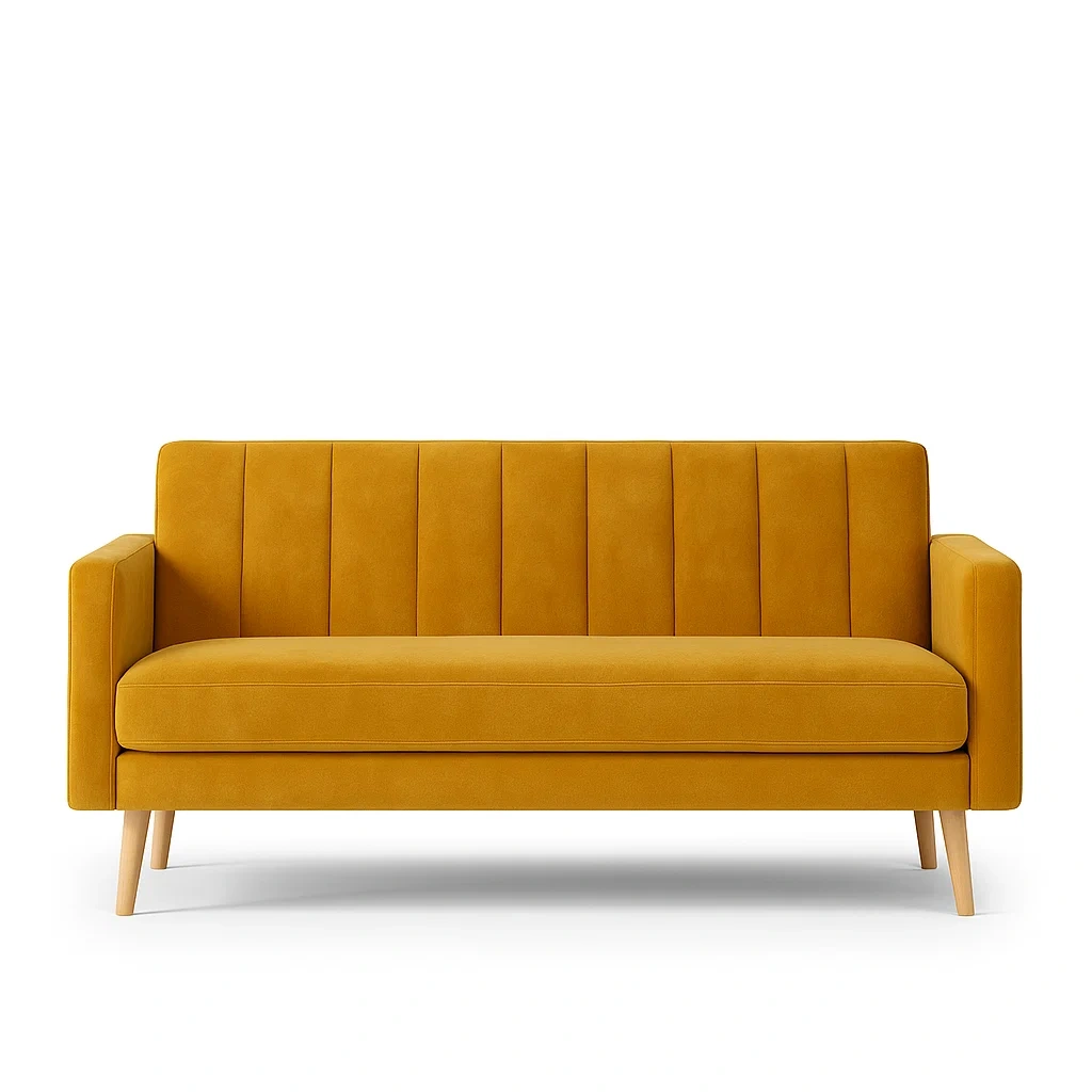 Canapé 3 places en tissu jaune pieds en bois