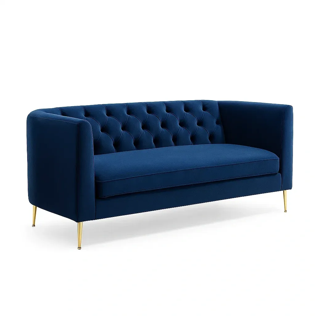 Matériau : Revêtement en velours, structure métallique, pieds en acier inoxydable doré.