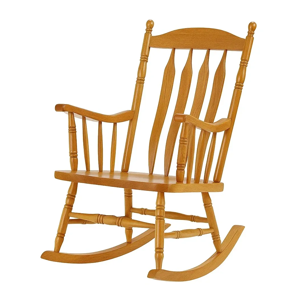 Cette chaise berçante en chêne massif offre un design classique et une fonction de balancement.
