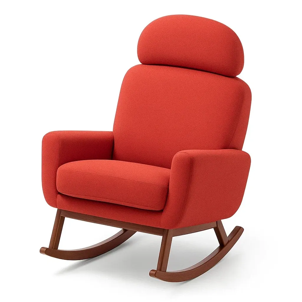Fauteuil à bascule en tissu polyester rouge et bois massif