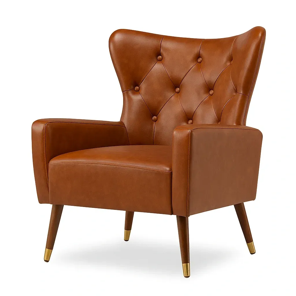 Fauteuil en cuir synthétique avec un remplissage en mousse de polyuréthane.