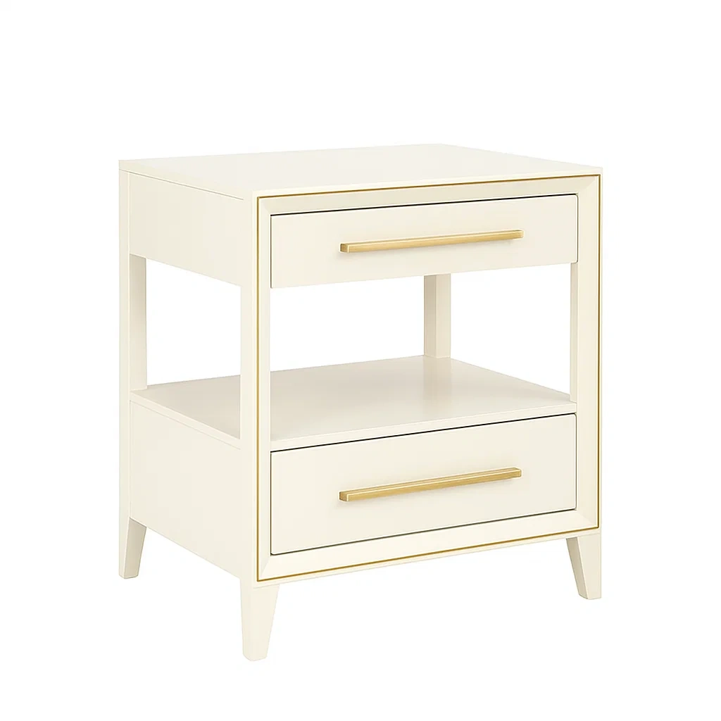 Table de chevet rectangulaire en bois mdf 2 tiroirs crème
