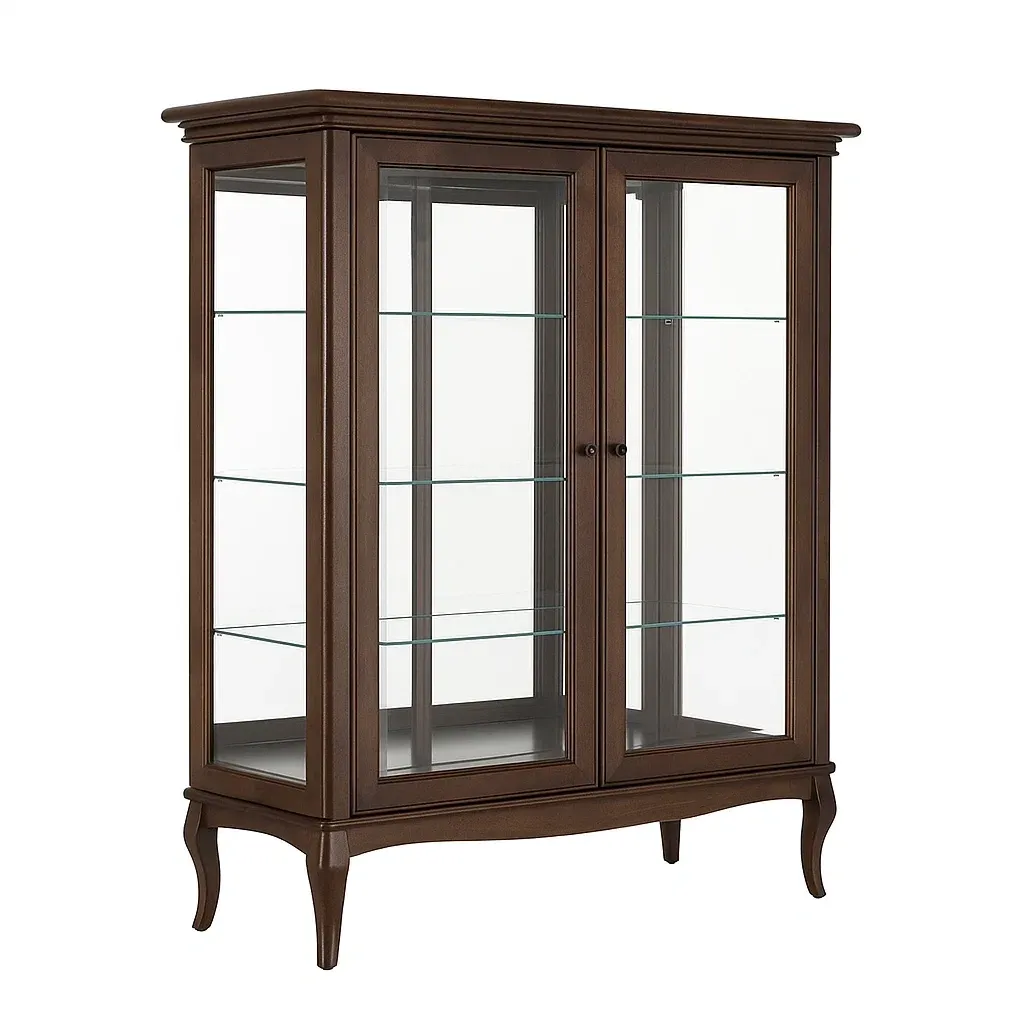 Vitrine en bois avec portes en verre trempé marron